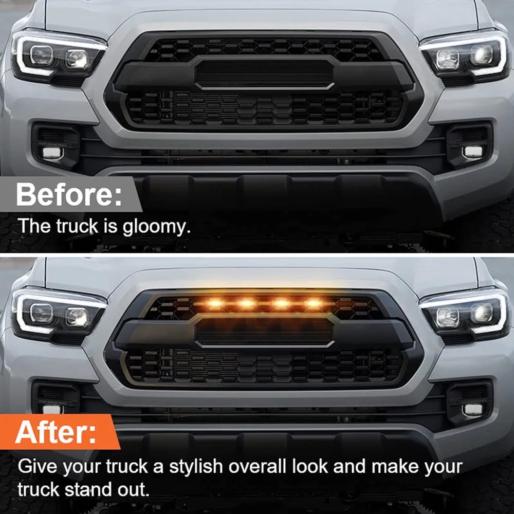LED Grill Lights for 2016-2022 Aftermarket Toyota Tacoma TRD PRO Grille with Harness (Amber Light with Black housing)